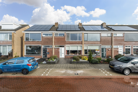 De fijne achtertuin ligt op het noordwesten en is verzorgd betegeld, voorzien van een stenen berging, een praktische achterom en een kleine overkapping naast de schuur. Deze tuin leent zich perfect voor lange, gezellige avonden buiten.